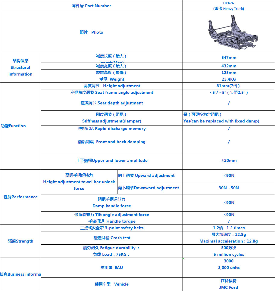 本公司獨立設計開發的產品有:依維柯駕駛座椅滑軌、調角器,并獲得國家專利;雪鐵龍轎車座椅滑軌,并經過法國雪鐵龍的認可;歐曼重型卡車的升降器、減震器;海南馬自達滑軌、江淮旅行車滑軌、英格爾滑軌、調角器、三菱汽車座椅骨架;江淮瑞風商務旋轉機構、滑軌、調角器。